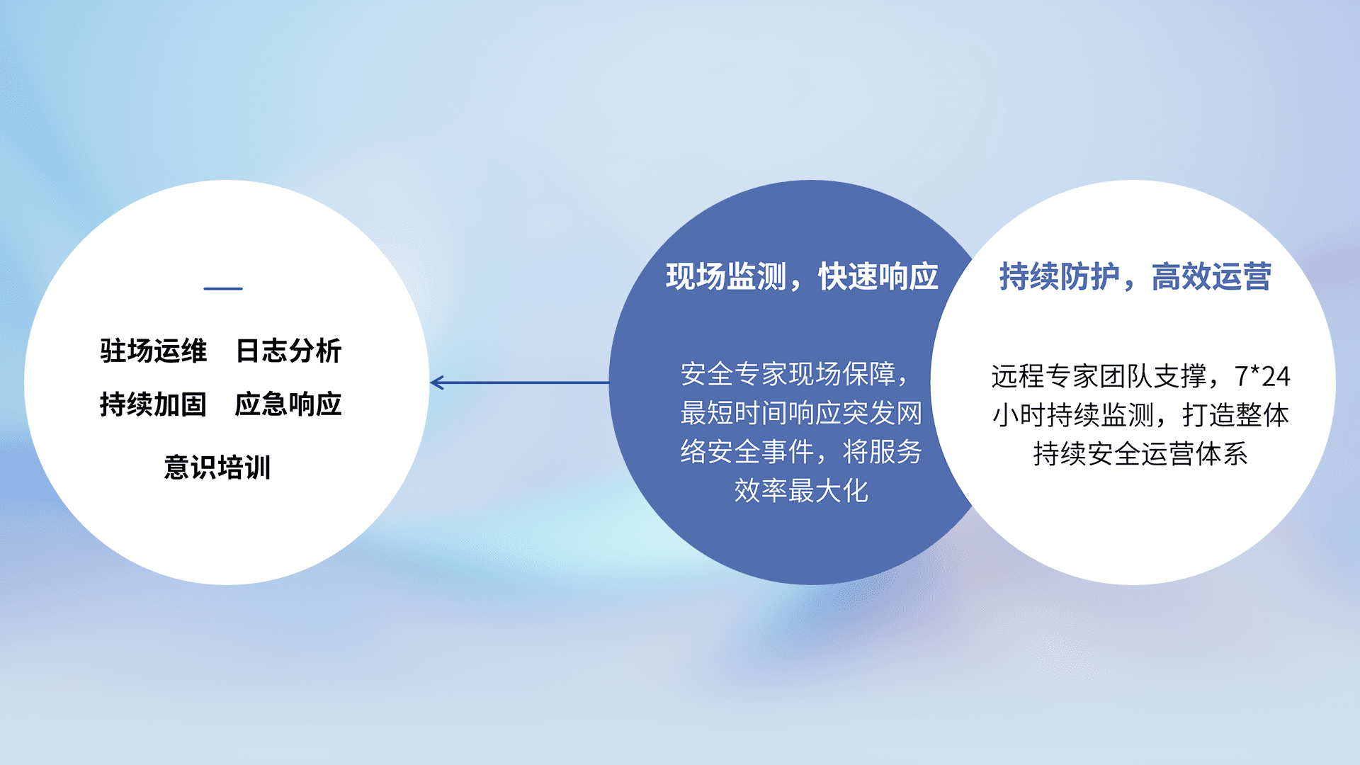针对客户行业特性,,提供专属的一站式安全管理服务,,,帮助客户全面感知网络空间威胁,,,,通过安全专家的线上、、、线下防护支持,,实现风险闭环,,,,将安全保障常态化,,,为客户打造常态化安全运维运营服务。。。。